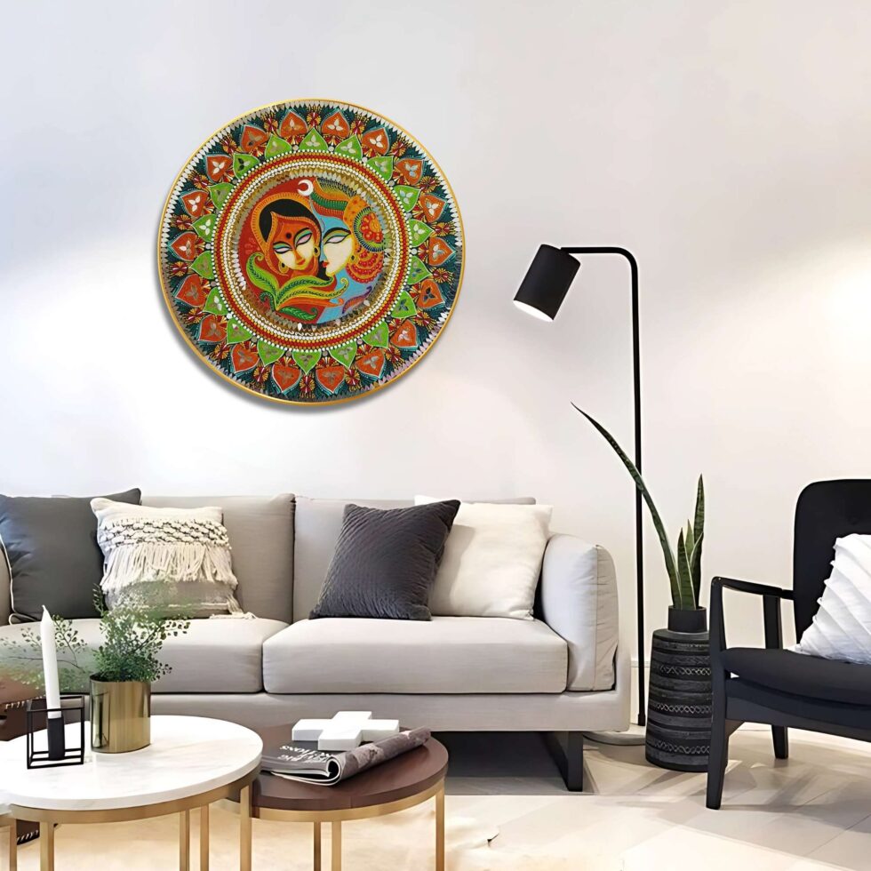 This captivating wall painting seamlessly blends traditional artistry with contemporary design, making it a perfect addition to any modern living space. Crafted with meticulous attention to detail, it features intricate patterns and vibrant colors that evoke a sense of harmony and cultural richness. Ideal for enhancing the ambiance of your home or office, this artwork serves as a testament to timeless craftsmanship and artistic expression.
