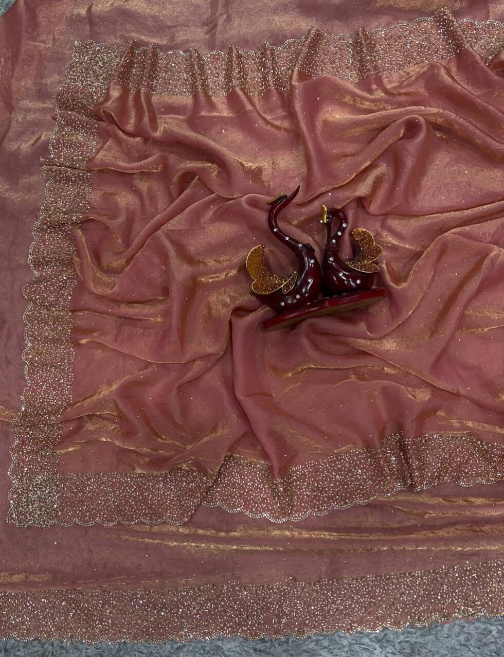 Space Silk Saree with original Jarkhan Diamond work all over. Includes matching diamond-worked blouse. Priced at ₹6,399.00.